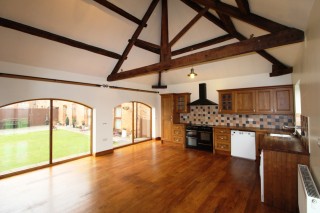 PROPERTY DETAILS: Two bedroom unfurnished bungalow set within an exclusive gated courtyard available for rent immediately. This well presented property has been fully refurbished and includes oil central heating, double glazed windows and doors, high beams, timber floors and is tastefully decorated throughout. The accommodation includes a living room with open plan kitchen / dining area, two bedrooms and a bathroom. Externally there is a single garage along with parking for up to five cars and a large rear garden area, which is predominantly grass along with a paved patio section. The property is located behind electric gates within a secluded courtyard of just four properties and is adjacent to Batemans Yard DIY Livery on Birchwood Lane, South Normanton where stabling facilities are available for an additional £120.00 per month per horse. This two bedroom barn conversion comprises; Entrance Hall;The external door leads into the entrance hall, which has timber flooring and internal timber doors leading into the living accommodation; Open Plan Living Area;This large open plan space includes a living room area comprising timber flooring, high level exposed roof timbers, a feature brick wall. Glazed French doors open onto the large garden to the rear whilst arched timber windows overlook the front courtyard. The living area flows into a dining / kitchen space. The fitted kitchen includes an integrated dishwasher, range style oven with hob over, integrated fridge / freezer and washing machine. The oil fired boiler is in this area which is large enough for a dining area to be set with a table and chairs. Bedroom 1;This large double bedroom again has timber flooring flowing from the hallway, a high ceiling with exposed beams and a feature brick wall. Glazed French doors lead out onto the rear garden. Bedroom 2;The second bedroom again has timber flooring and a high ceiling with exposed beams whilst a double glazed window overlooks the rear garden. Bathroom;The bathroom has a tiled floor and the walls are mainly tiled. There is a freestanding bath with rain-shower over along with a pedestal wash hand basin, white w.c. and heated towel rail. External;To the front of the property is the private courtyard, which includes a lawn area, single garage and parking for up to five cars. To the rear there is an exceptionally large garden which is predominantly lawn with a large paved patio. Services;Mains water and electricity are connected. Heating is via an oil boiler and the drainage is attached to a septic tank. A service charge of £150.00 per year paid in advance covers the cost of emptying the septic tank and electric to the entrance gates. Directions;From South Normanton; Turn off of The Common onto Birchwood Lane and continue to the traffic island. Go straight over and pass over the A38, continuing for approximately 50 yards where the gated entrance to the property is set on the left hand side. From Alfreton; Take the A38 towards Junction 28 of the M1 and exit at the slip road signed for Cotes Park Industrial Estate. At the traffic island at the end of the slip road turn right onto Birchwood Lane and pass over the A38, continuing for approximately 50 yards where the gated entrance to the property is set on the left hand side. Footnote;The property is available unfurnished for £725.00 per calendar month. A deposit of one month’s rent is required prior to commencement of the tenancy and there is a servcie charge of £150.00 per year paid in advance. |